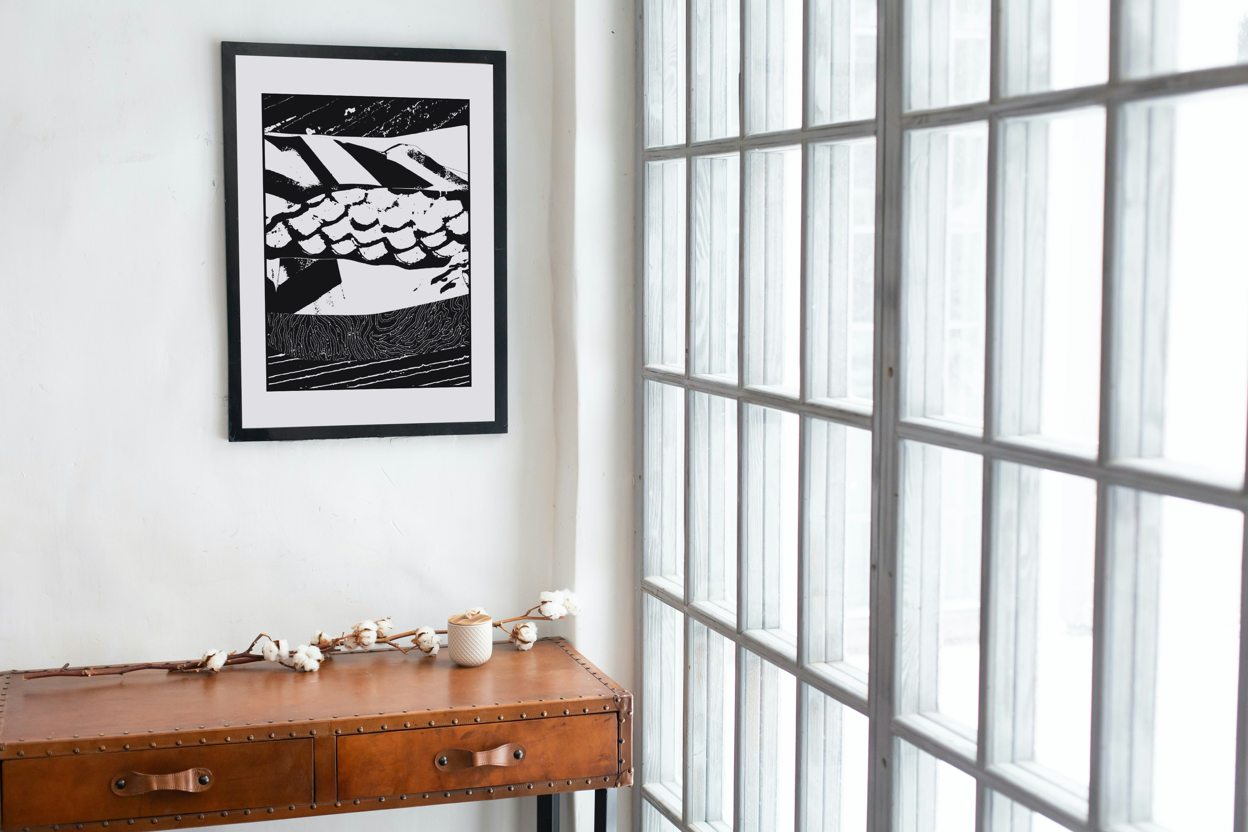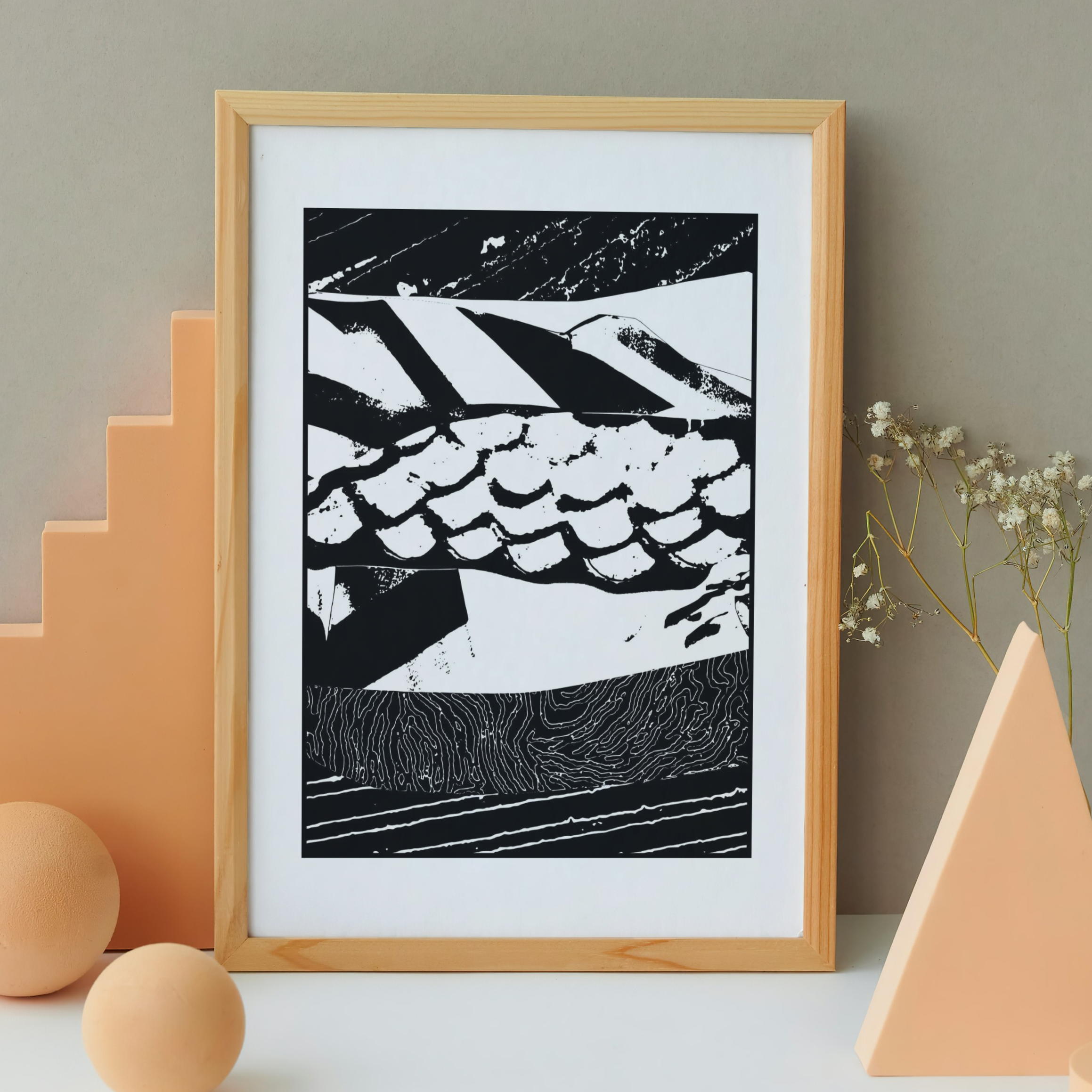 Czarno-biały plakat powstały poprzez eksperymentowanie z grafiką. Niecodzienny, surowy i minimalistyczny.