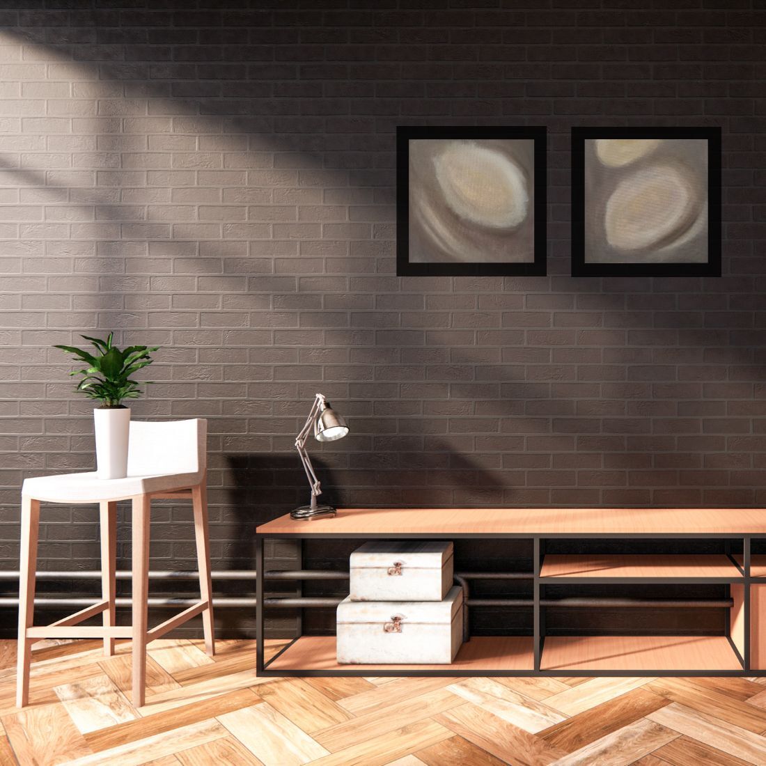 Dyptyk wykonany w kolorach ziemi. Kojący, kojarzący się z naturą.