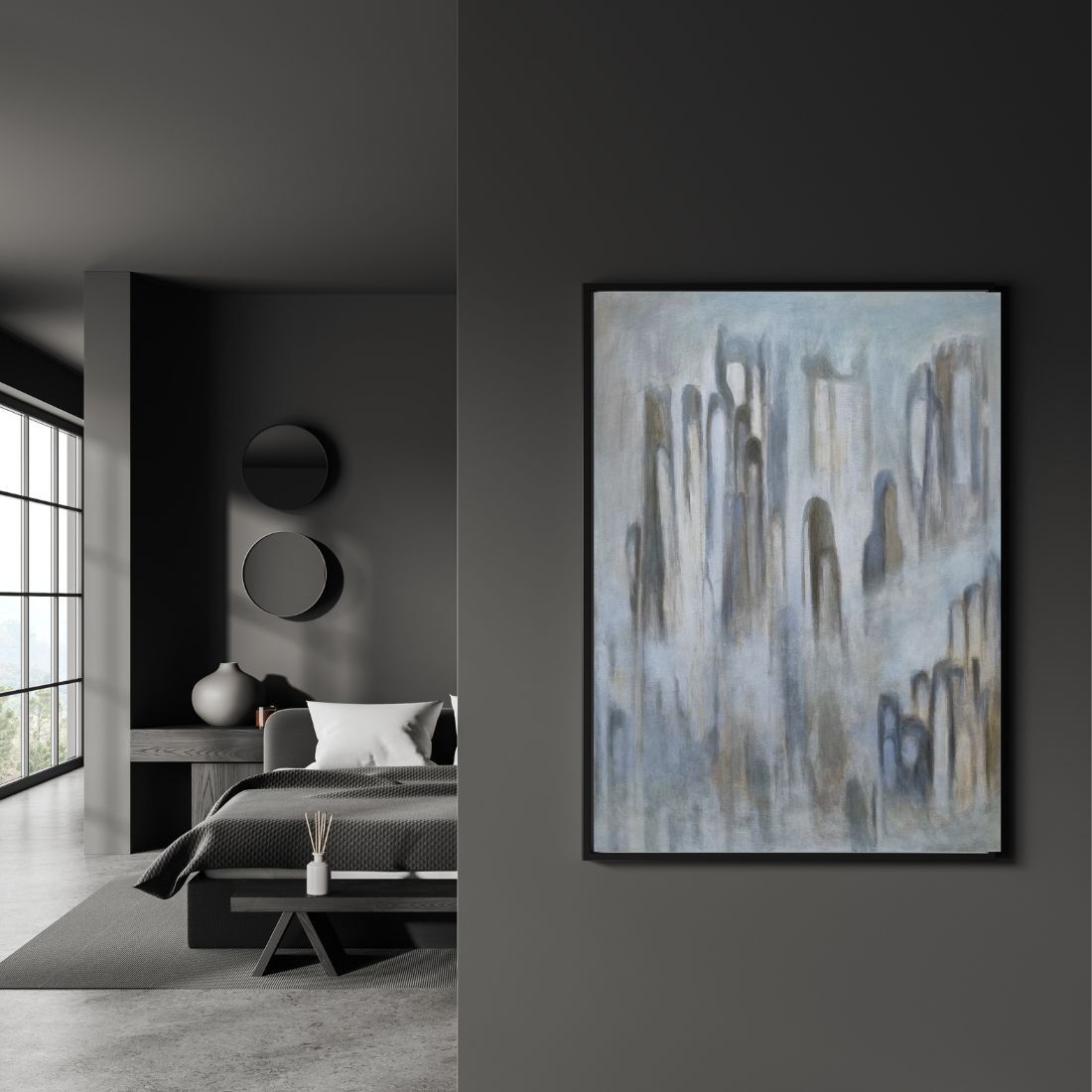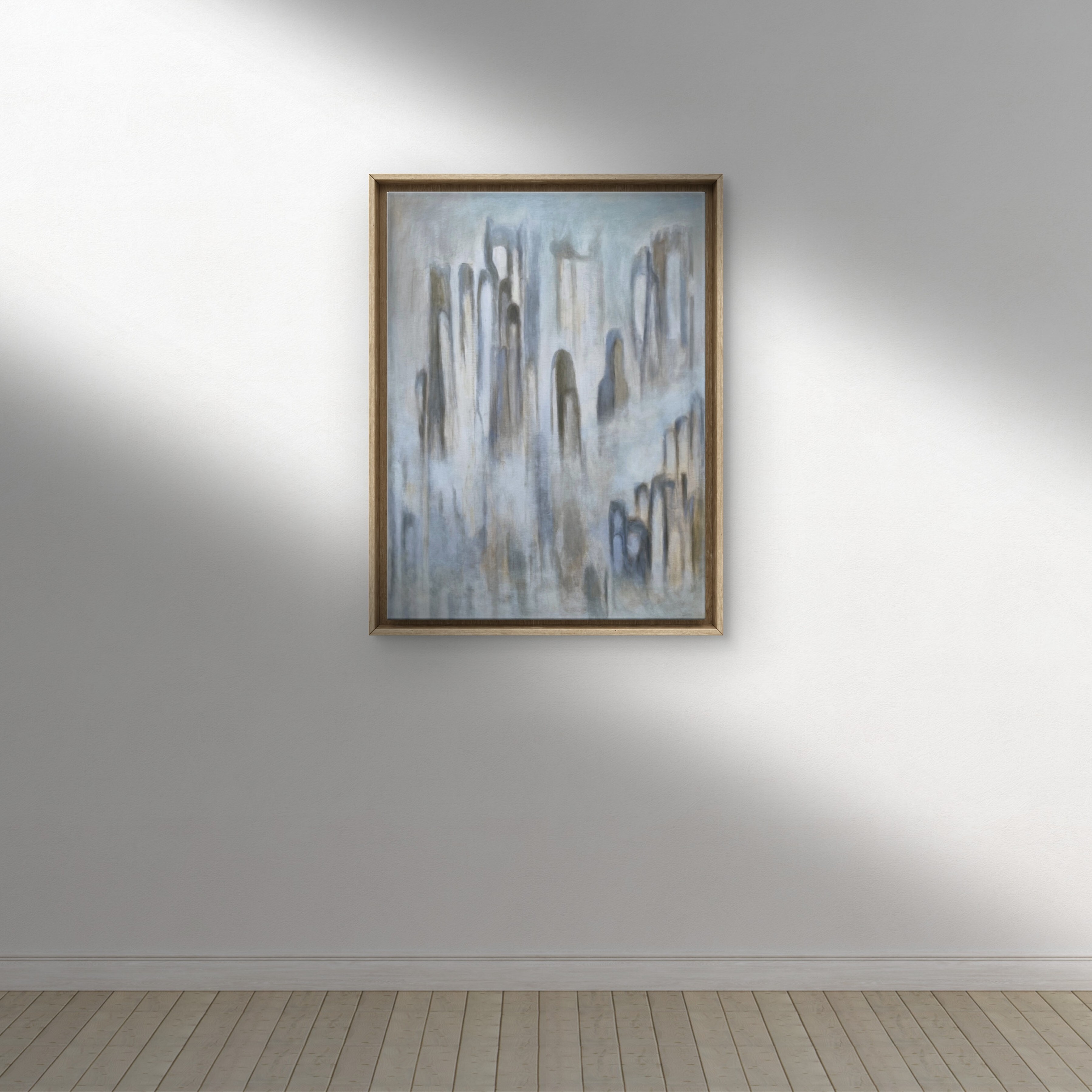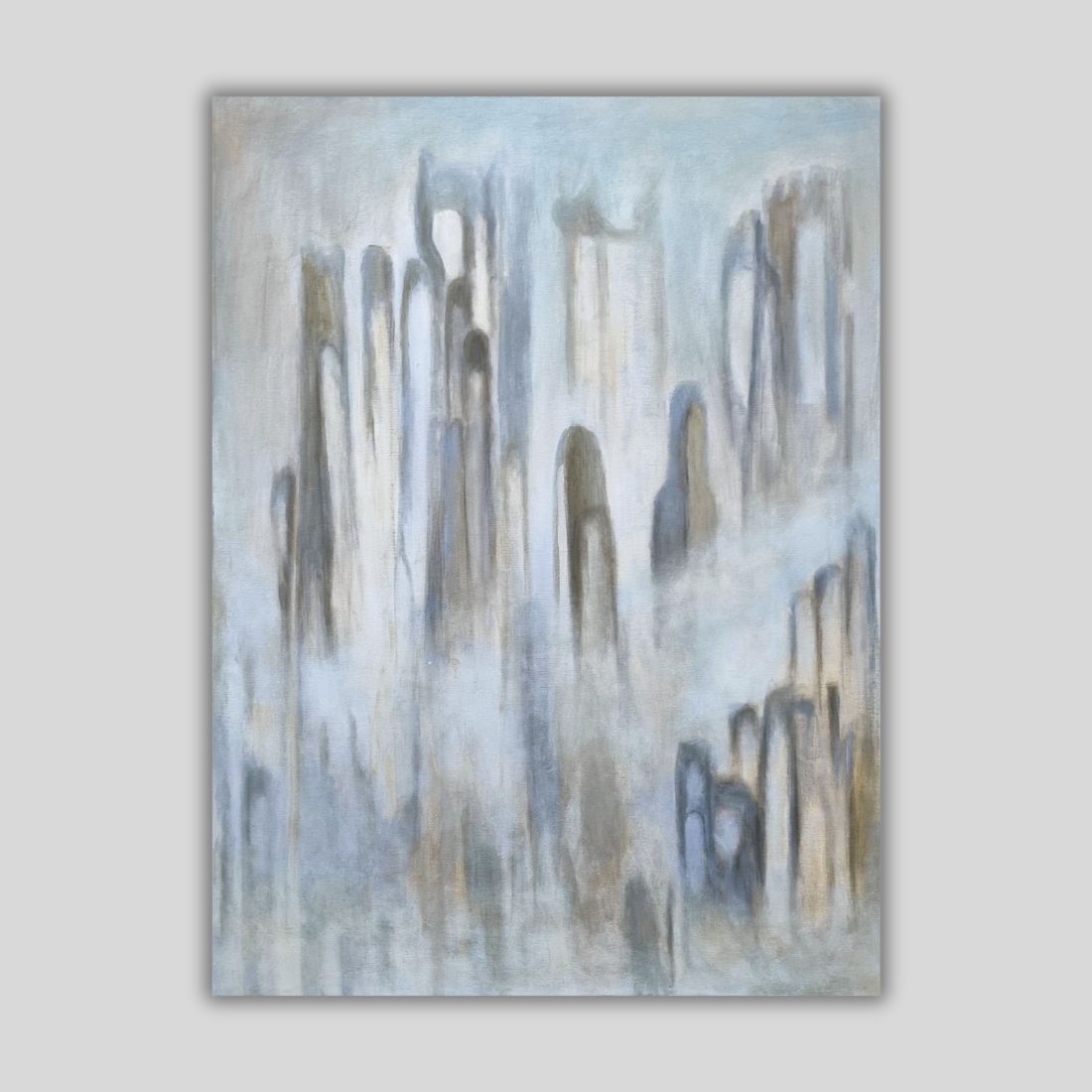 Zamglony, wykonany stonowanymi barwami.
