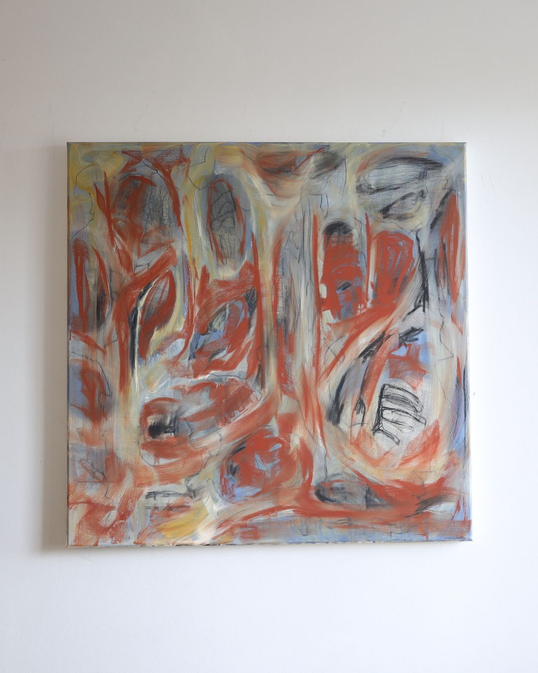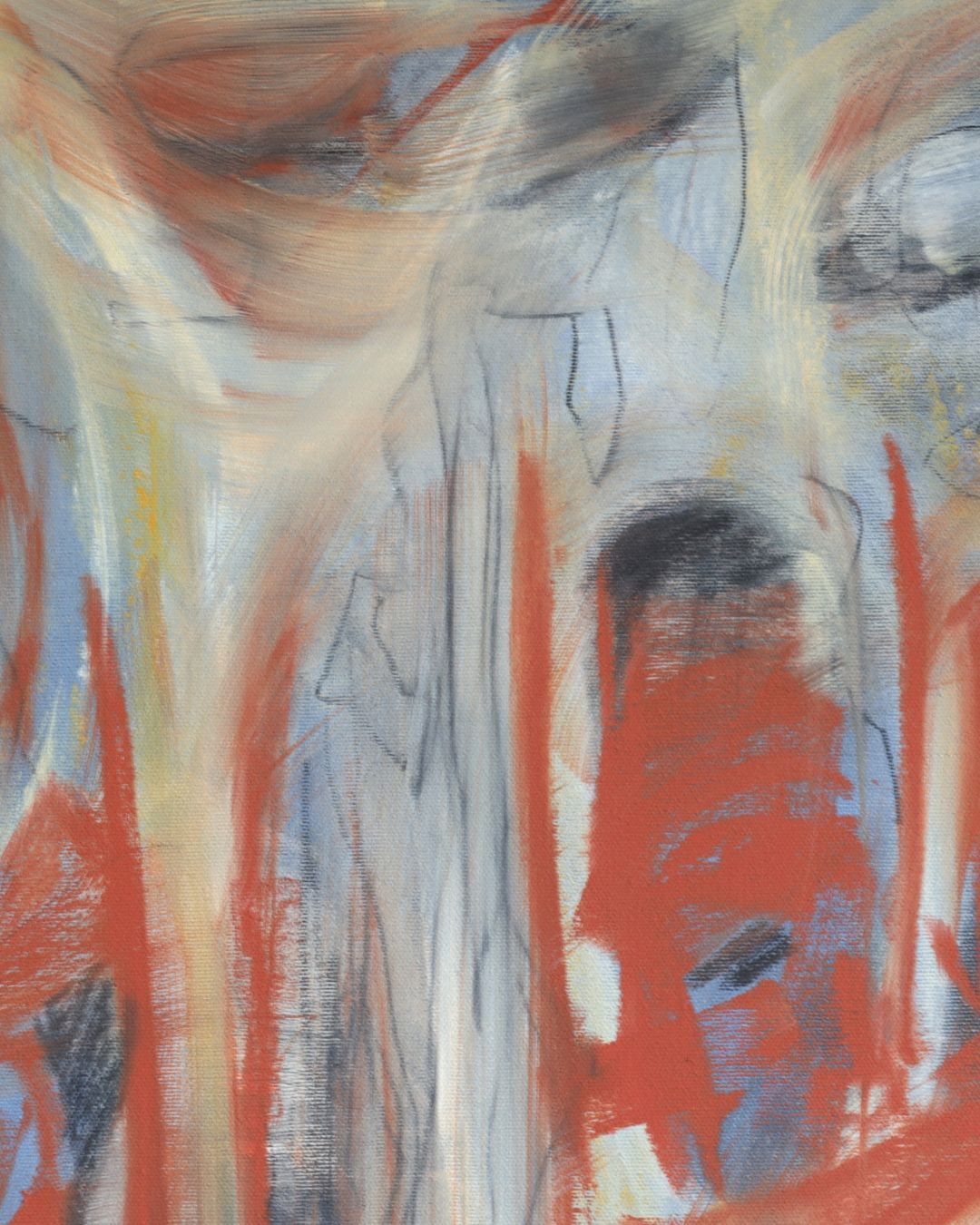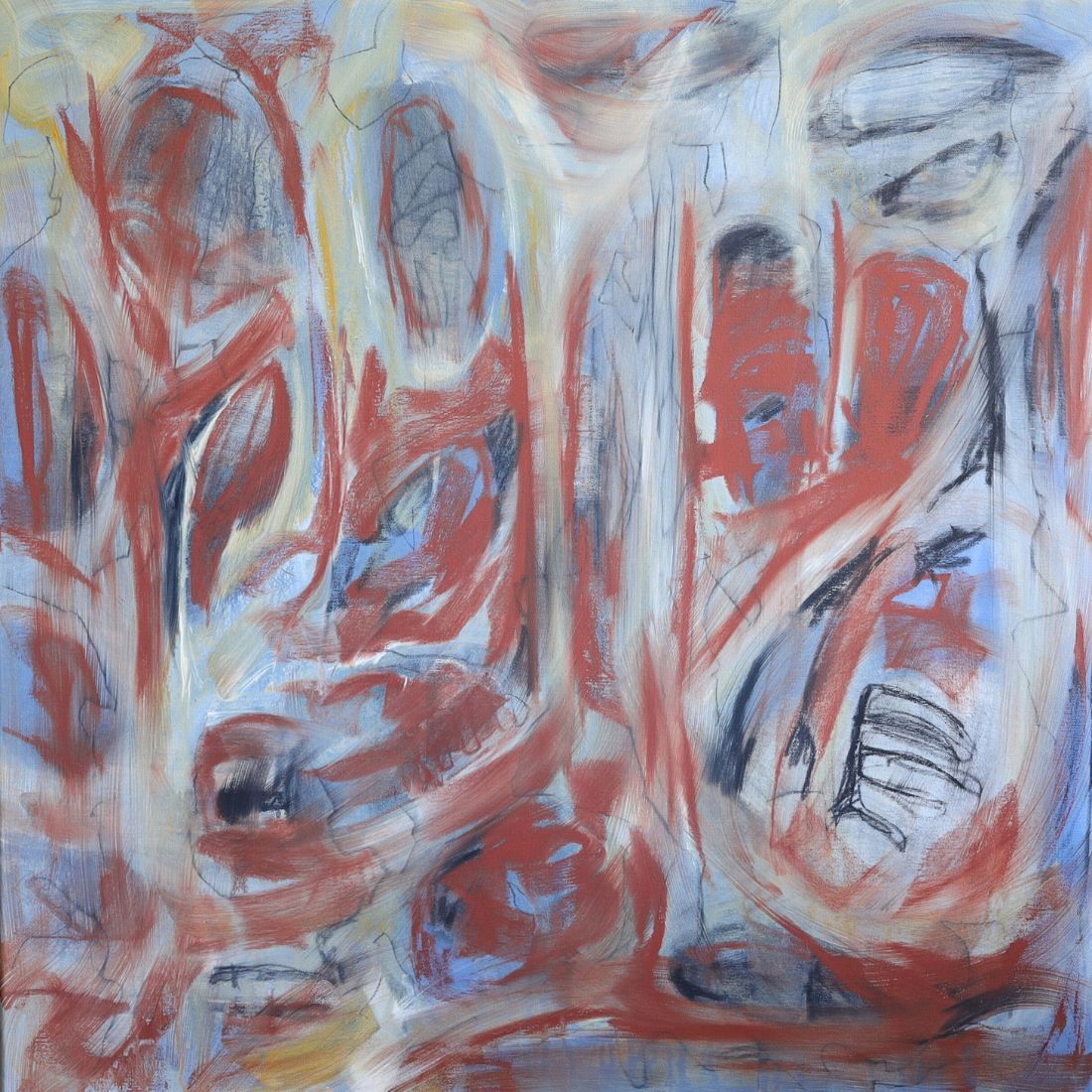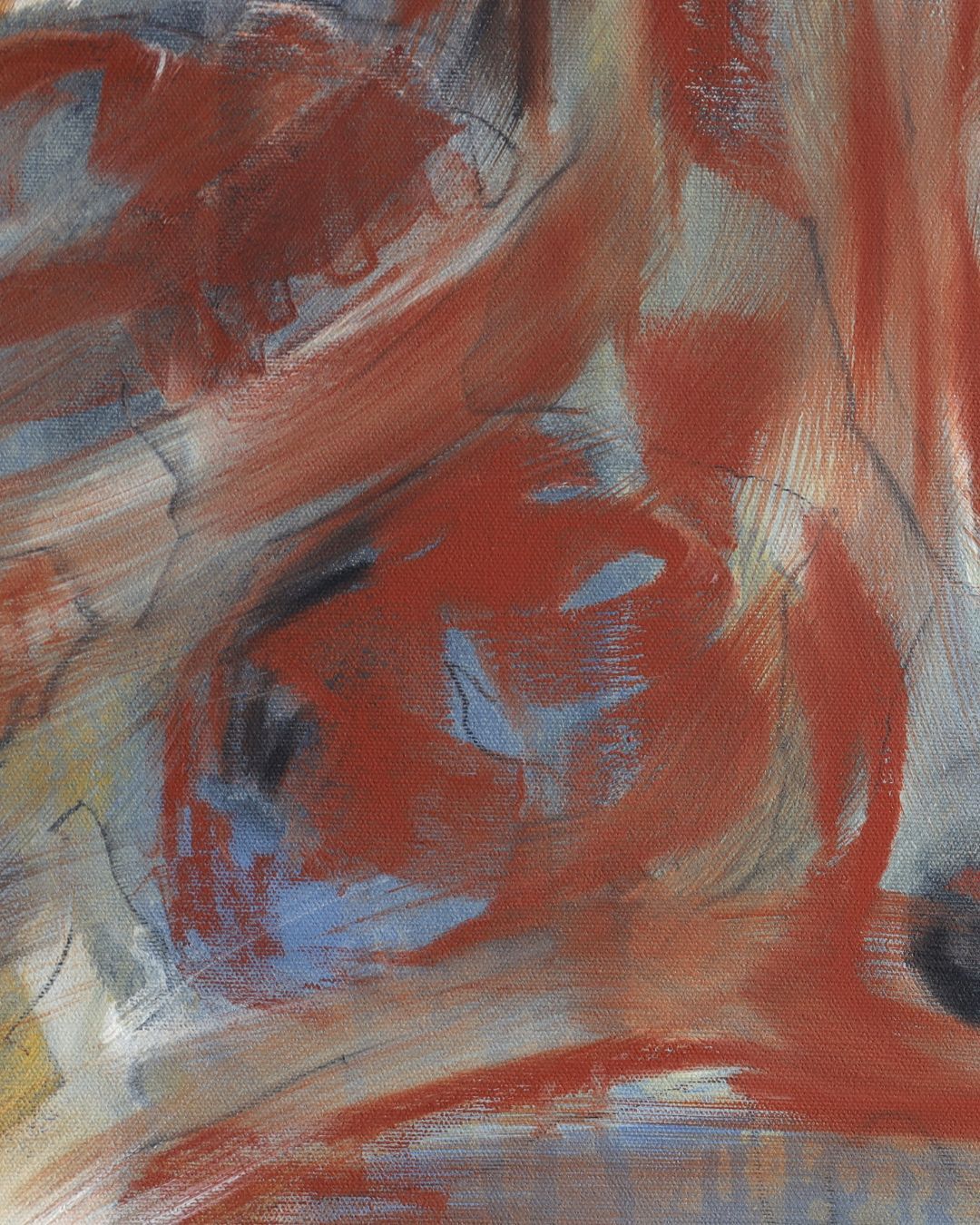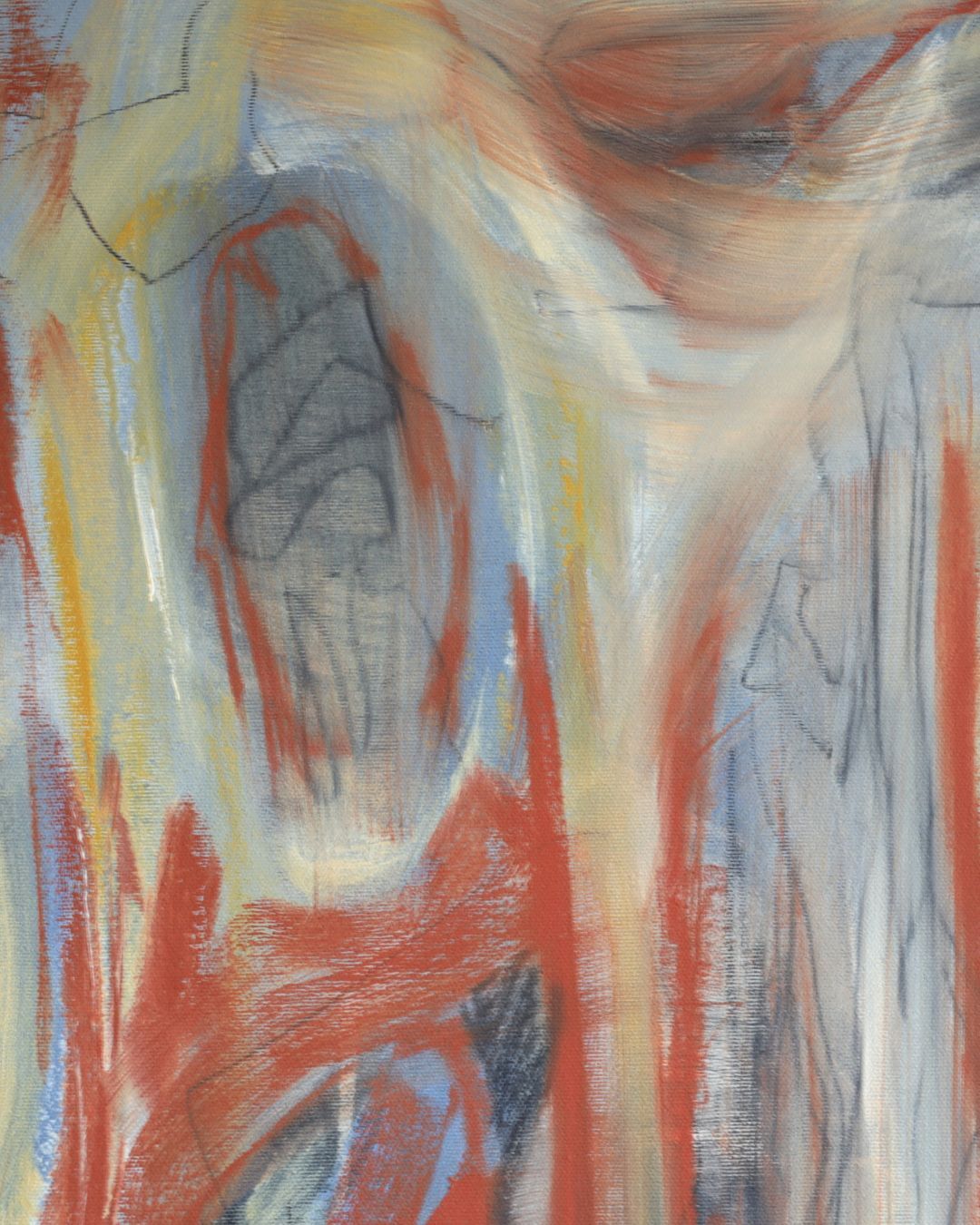 Ekspresyjny obraz w dużym formacie. Zastosowałam miejscami efekty rozmycia oraz ekspresyjne pociągnięcia węglem oraz sangwiną. Z odległości widoczne organiczne przenikające się kształty. Będzie pięknie prezentował się w jasnych wnętrzach dodając im kontrastu oraz punktu zaczepienia.