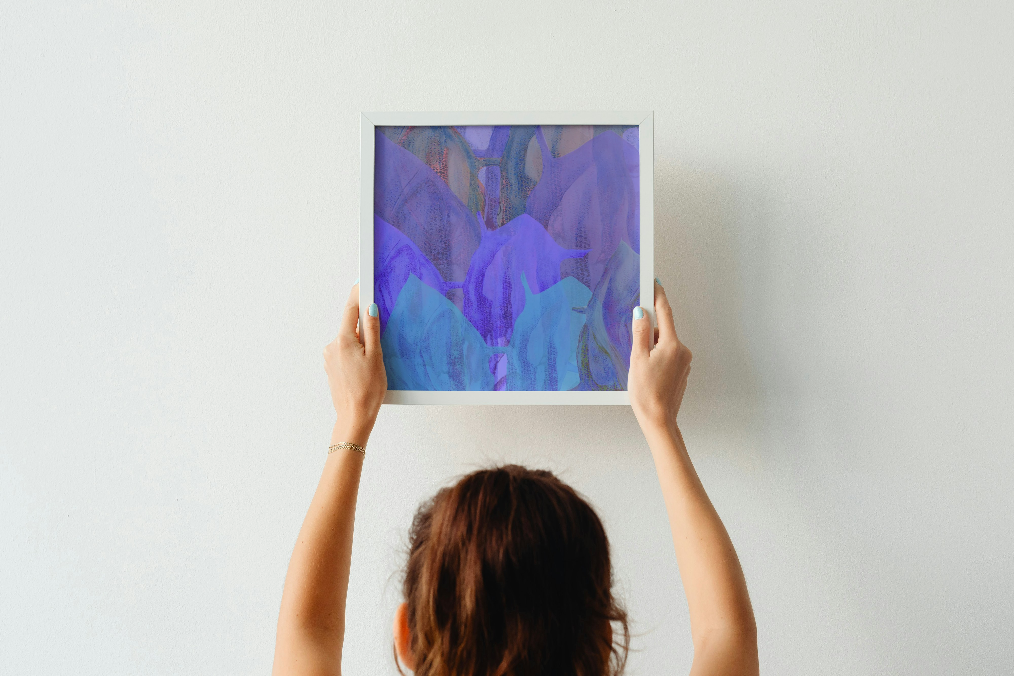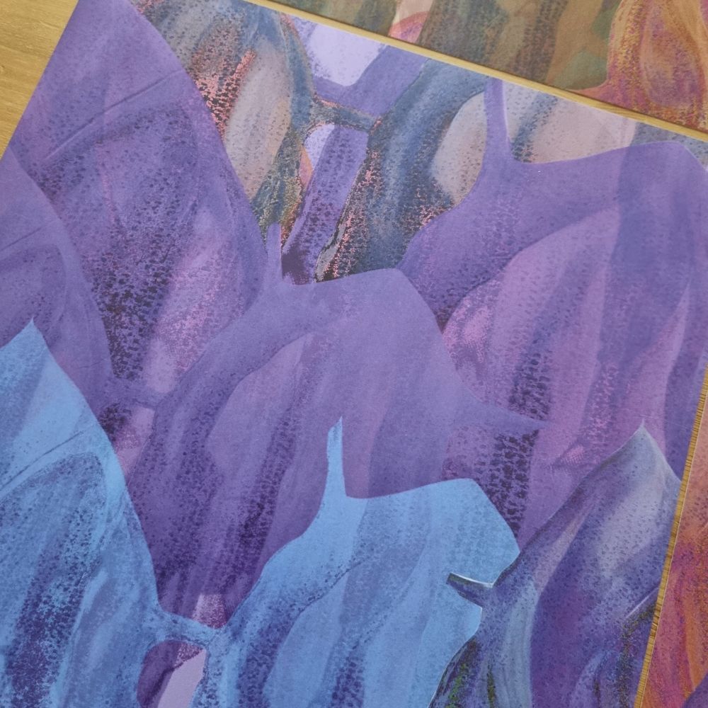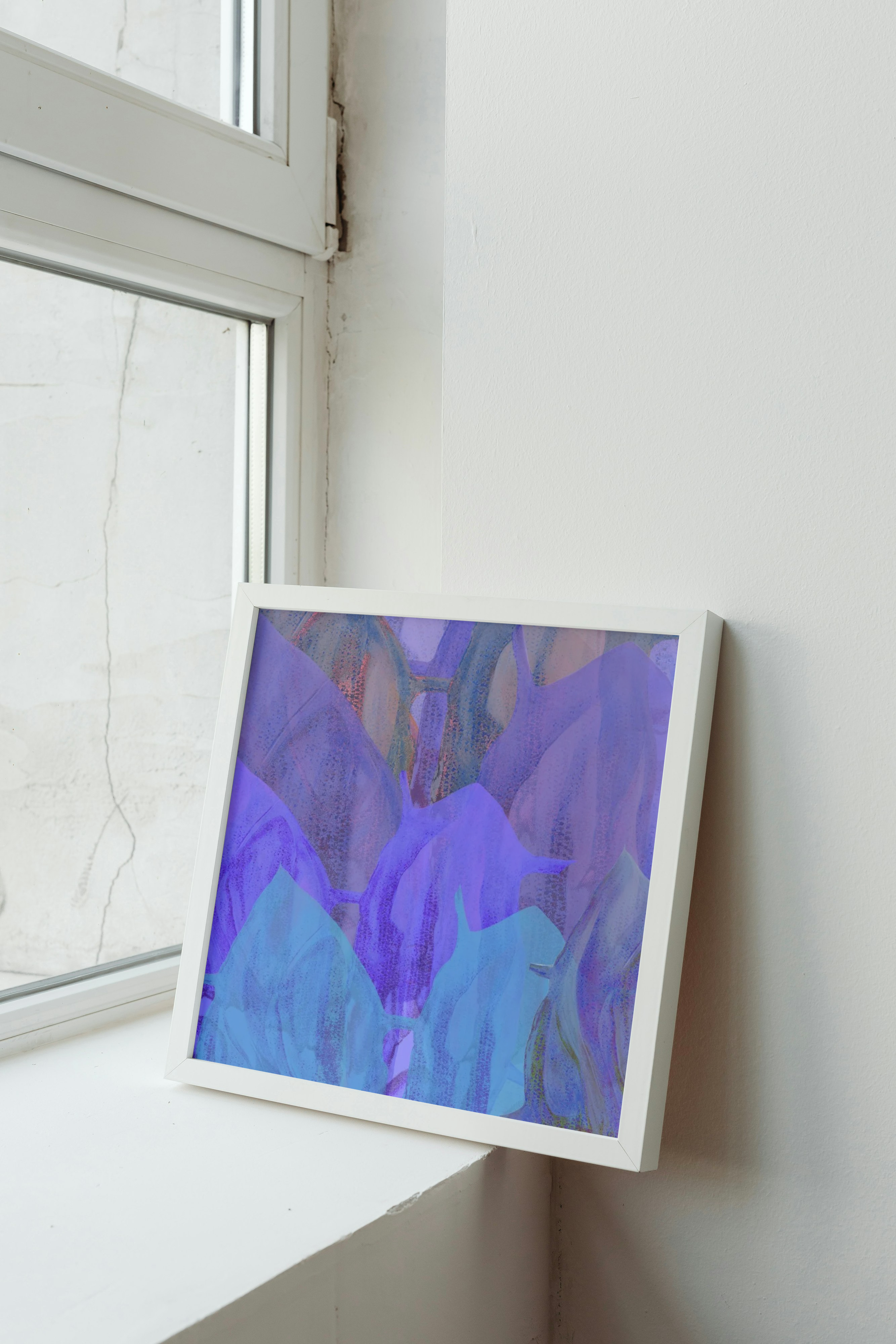 Warstwy zimnego błękitu, granatu i fioletu przenikają się niczym oddech i cisza. Idealny dla tych, którzy lubią patrzeć długo i widzieć coraz więcej.